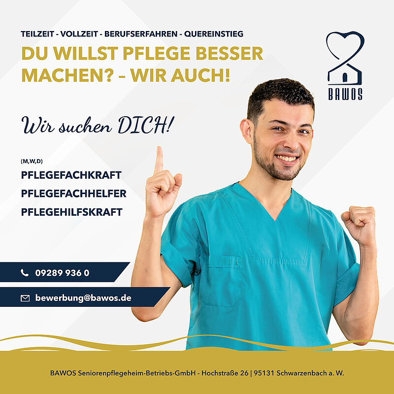 Und das Beste: Du kannst bei uns durchstarten – ganz gleich, ob du am Anfang deiner beruflichen Laufbahn stehst oder bereits eine abgeschlossene Ausbildung mitbringst. Wenn du schon Pflegefachkraft bist oder eine Ausbildung in einem verwandten Bereich absolviert hast, eröffnen sich dir bei uns zahlreiche Möglichkeiten für deinen nächsten Karriereschritt. Von der Arbeit in unserem Pflegeheim über die ambulante Pflege bis hin zu verantwortungsvollen Aufgaben in der Tagespflege kannst du deine Erfahrung gezielt einsetzen und dich fachlich weiterentwickeln. Auch Spezialisierungen oder der Weg in Leitungsfunktionen stehen dir offen – wir unterstützen dich dabei, deine Ziele zu erreichen.